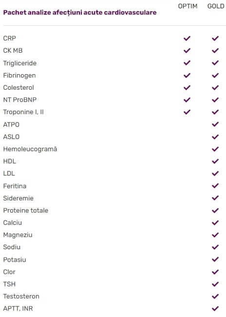 Protejează-ți inima cu un set complet de analize medicale specializate pentru a depista și monitoriza afecțiunile acute cardiovasculare, ajutând la prevenirea complicațiilor grave.