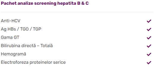 Depistează și gestionează hepatitele B și C pentru un ficat sănătos și o viață plină de vitalitate. Analizele incluse în acest pachet te ajută să identifici și să monitorizezi aceste afecțiuni, contribuind la menținerea unei sănătăți hepatice optime.